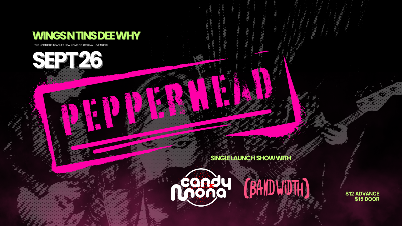 Pepperhead are hitting the Northern Beaches for an epic home show at Wings n Tins in Dee Why with locals Candy Mona and Bandwidth.